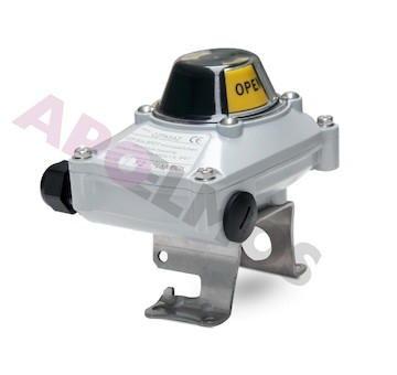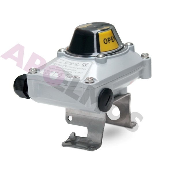 Kompaktní hliníkový box s optickým ukazatelem CZPASAZ obsahuje dva elektromechanické snímače poloh, které slouží k signalizaci koncových poloh armatur ovládaných čtvrtotáčkovými pneumatickými pohony.